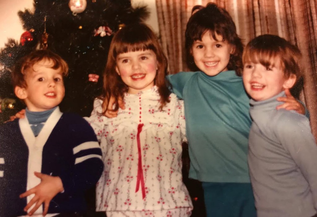 Back row: Ellyn, Mickey, Kelly, Chris. Front row: Kim, twins Justin and Erin. These two families were complete! The photo above is from about 1984.